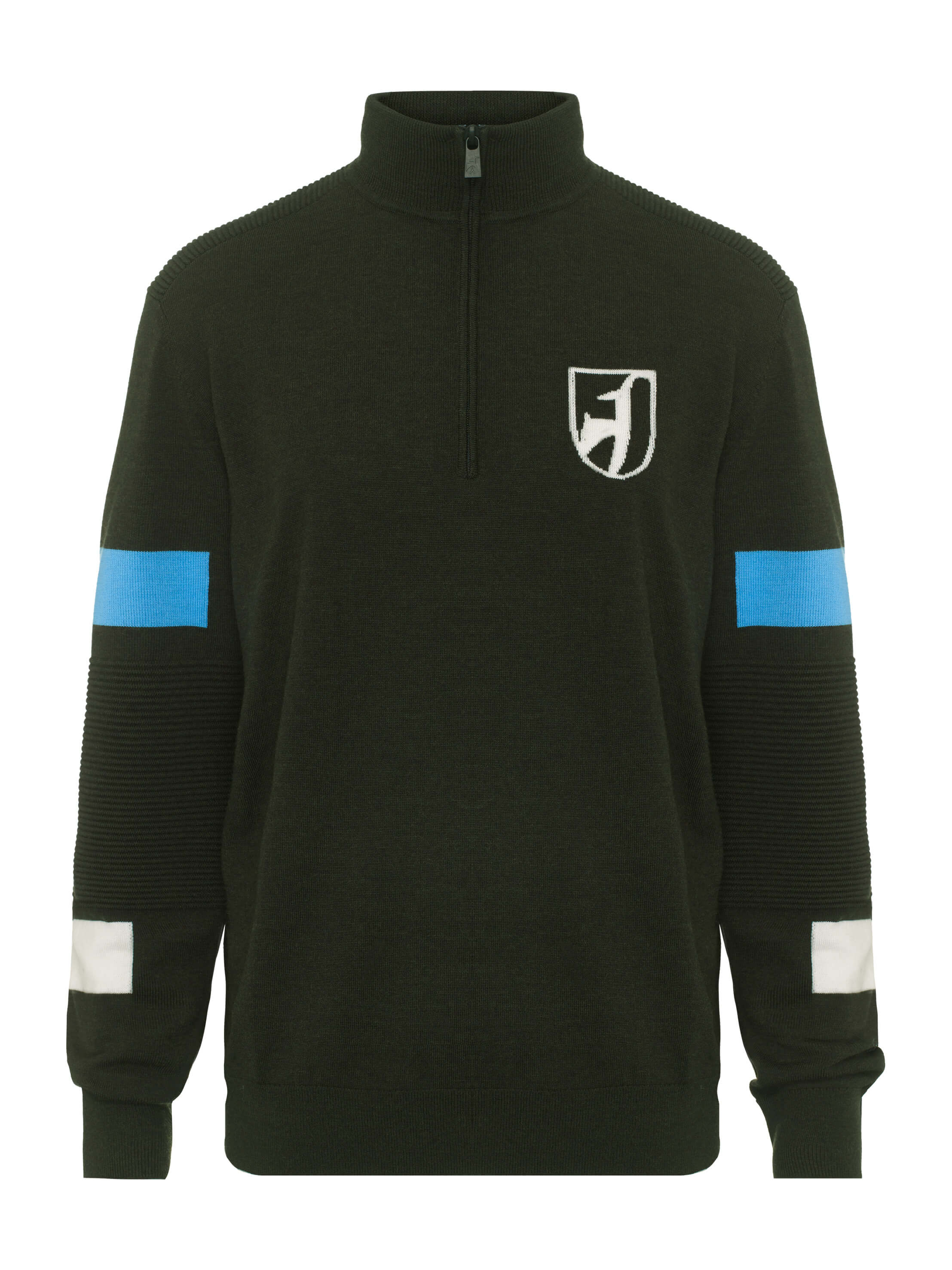 The HUBERT men’s merino sweater is perfect for both skiing and leisure. The extra fine merino wool is breathable, moisture-wicking, and temperature-regulating. The stand-up collar protects the neck from wind, while the YKK® zipper allows for individual ventilation. Various color-contrasted details give the knit sweater a sporty character. The smocked sections on the shoulders and upper arms complement the Toni Sailer style.