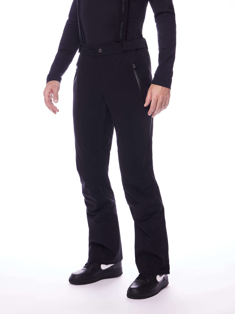 The NICKY SHORT LENGTH men’s ski pants, made from Japanese Premium 4-way Stretch, prove to be extremely reliable both on the slopes and in off-piste terrain. They offer a perfect fit with maximum freedom of movement and high protection against cold, wind, and moisture. For optimal ventilation, the pants feature ventilation zippers on the outer legs as well as easy entry zippers, making it easier to put on with ski boots. The TRA-IN sliding button ensures a secure waistband closure. The Toni Sailer ski pants also come with suspenders from the collection, and the leg length is shortened by about 5 cm.