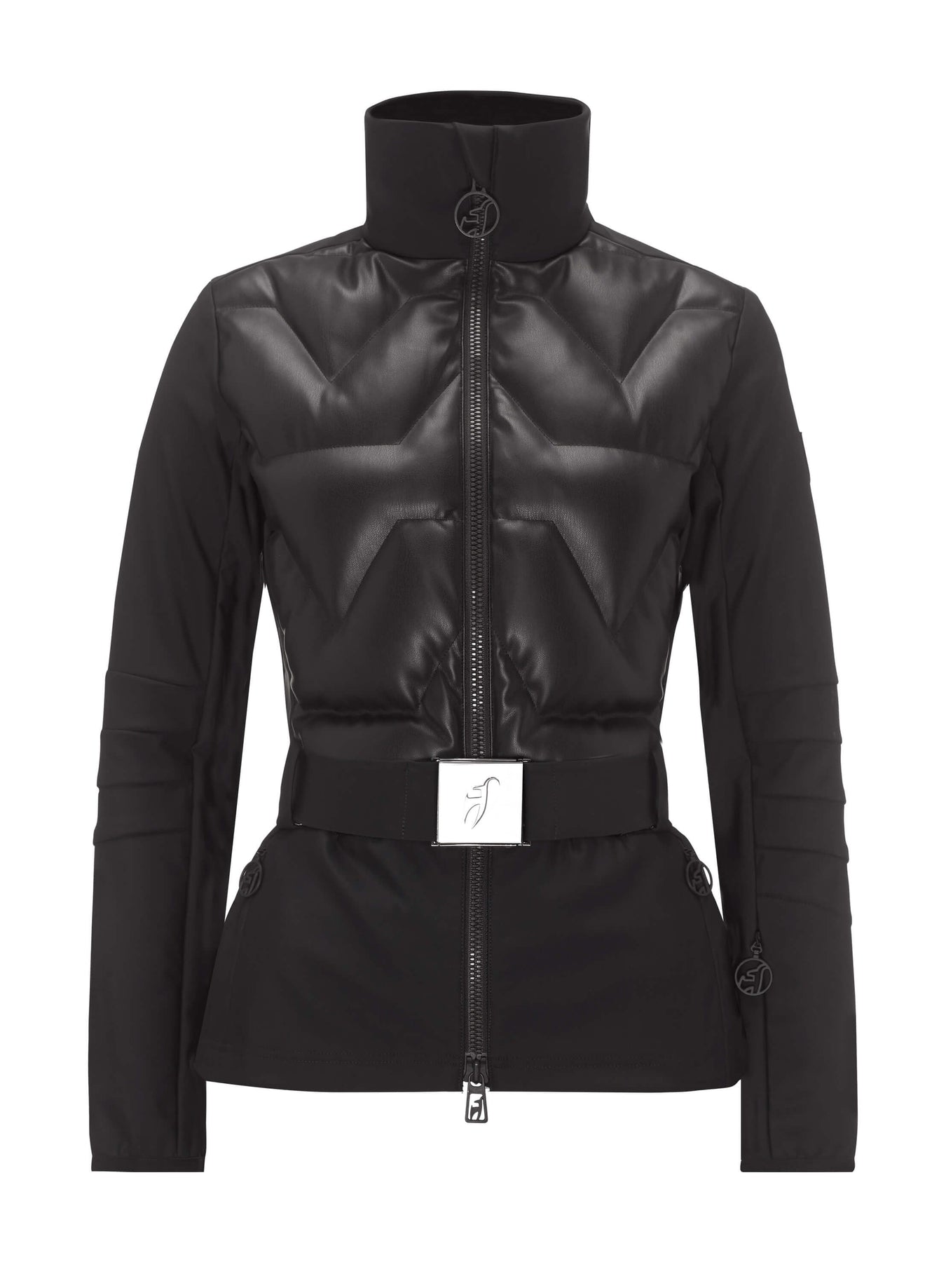 Fashion X Function - the HOLLY FAUX LEATHER light jacket is made for the boulevards! The PrimaLoft® Down Blend keeps you warm while having very low weight. The jacket with a mix out of a 3L softshell fabric and a sophisticated faux leather. This slim fit jacket is perfected with our logo waist belt.