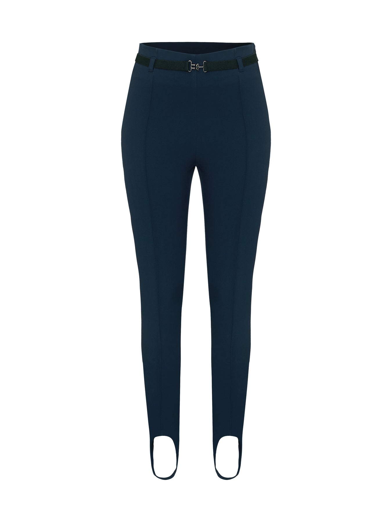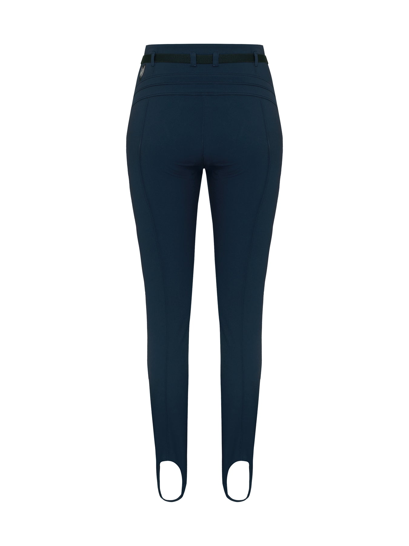The THEODORA women’s stirrup pants are designed for a variety of activities during the cold season. Whether at après-ski, on a winter walk, or golfing, a stylish appearance is guaranteed. The pants impress with their perfect fit and feminine silhouette, while the thermo double fabric provides pleasant warmth. A YKK zipper is integrated into the left side seam to make it easier to put on and take off the stirrup pants. With an elastic belt and a 3D Toni Sailer logo patch.