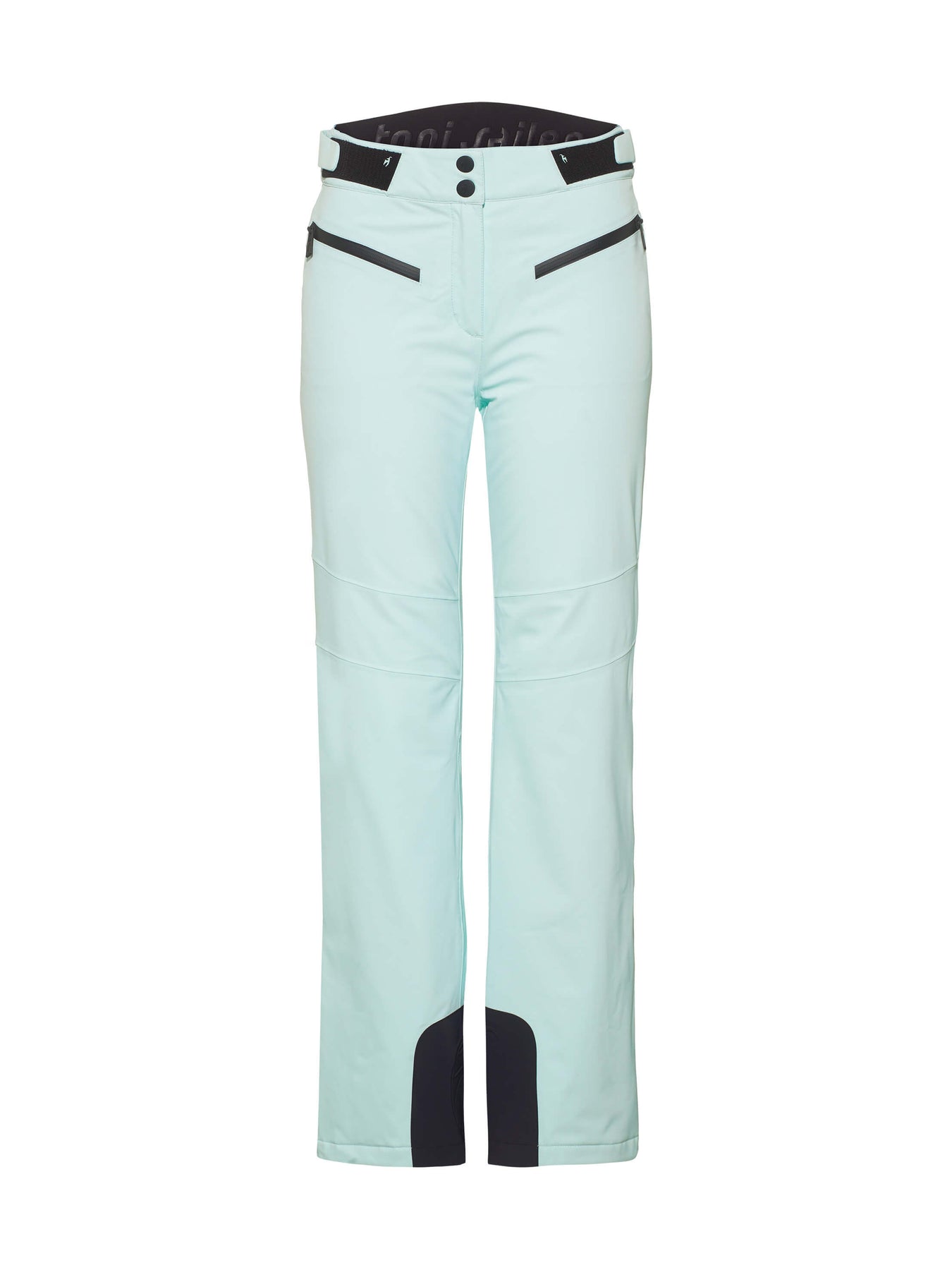 The technical and completely waterproof AMIS women’s ski pants impress with a perfect fit and maximum freedom of movement. The Japanese Premium 4-way Stretch stretches effortlessly in all directions, just like the PU membrane, which provides additional protection against moisture. The back waistband is cut higher to optimally warm the kidney area, while the YKK® AquaGuard® zippers reliably seal the two pockets against water. Fine details of the ski pants include the molded Toni Sailer logo on the edge protection.