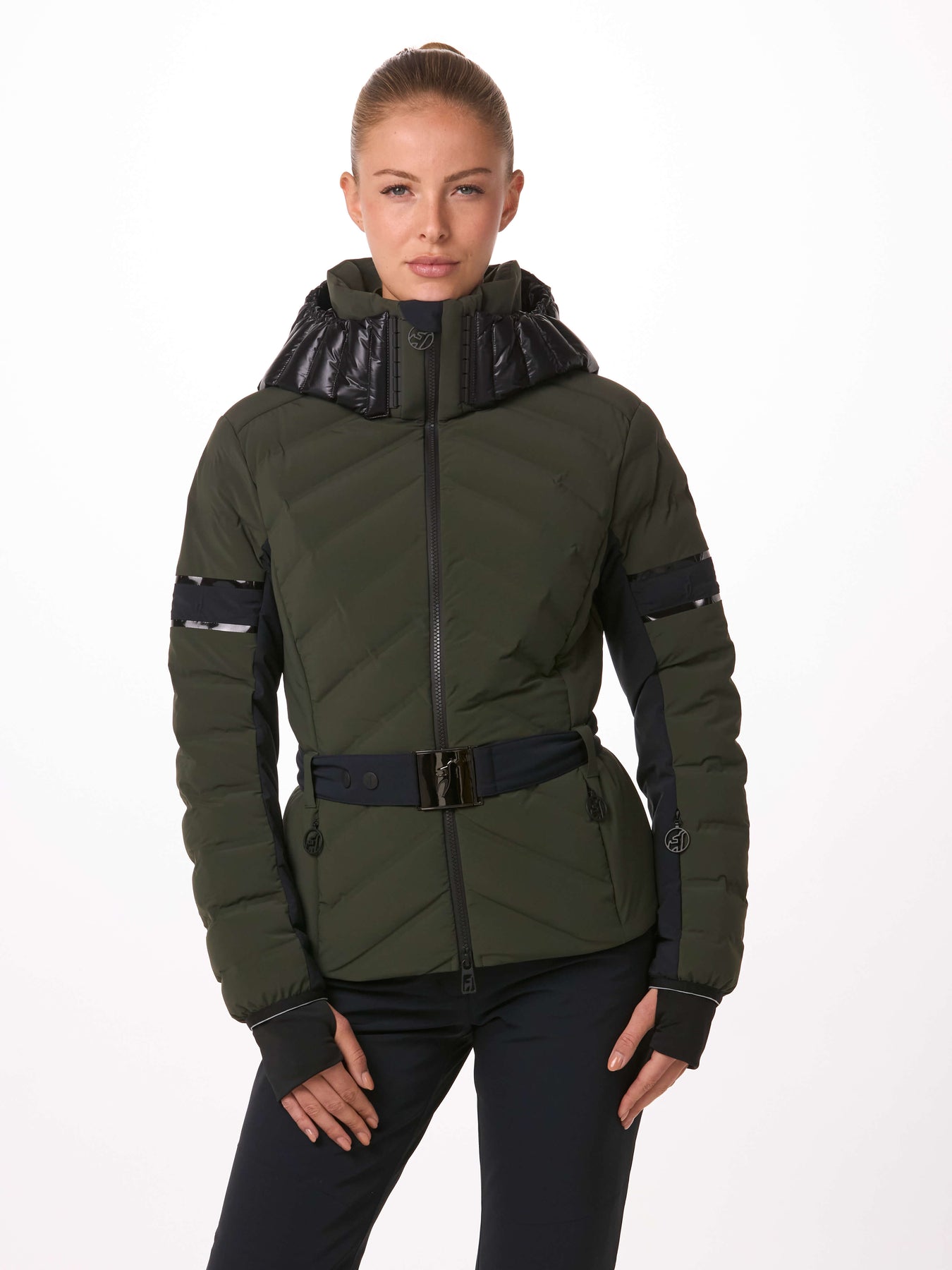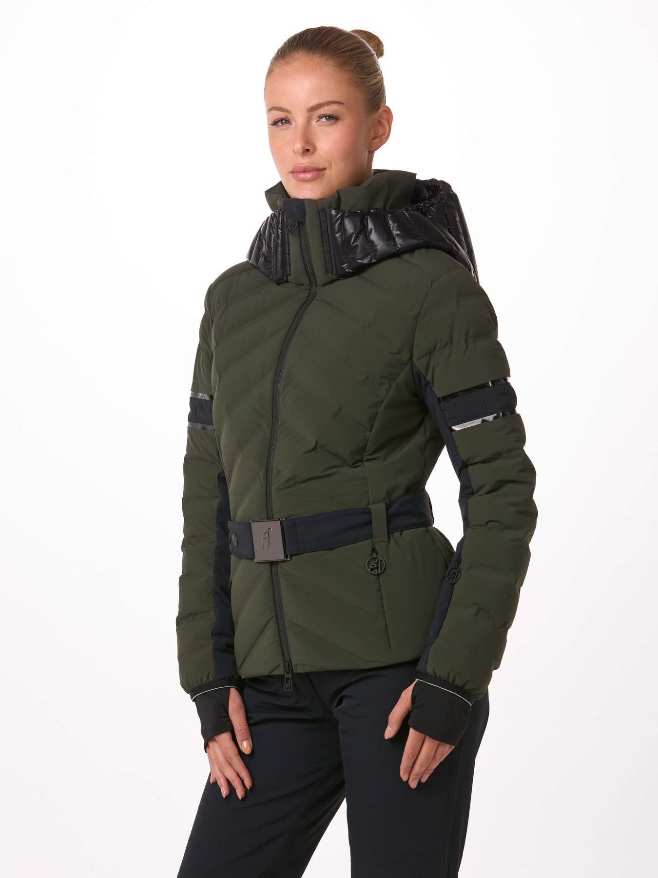 Our newest and most stretchable member of the Toni Sailer family. The CORINNE jacket comes for the first time after 20 years of development with our exclusive Premium Light 4-way Stretch fabric. PrimaLoft® Down Blend insulation in bonded chambers keeps you warm while wearing one of the lightest ski jackets at the same time. The belt and the new hood construction are statement design elements of the slim fit CORINNE jacket.
