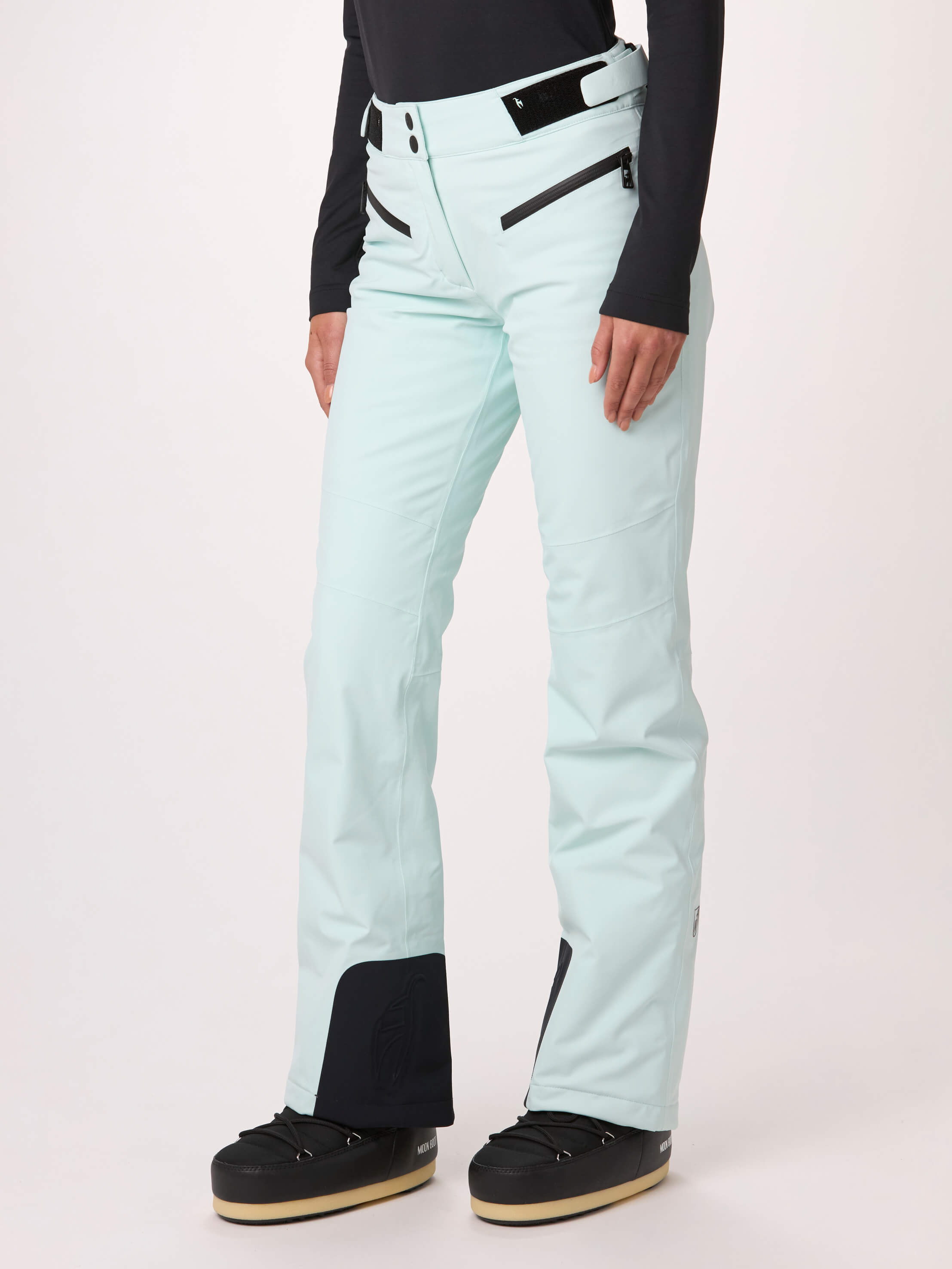 The technical and completely waterproof AMIS women’s ski pants impress with a perfect fit and maximum freedom of movement. The Japanese Premium 4-way Stretch stretches effortlessly in all directions, just like the PU membrane, which provides additional protection against moisture. The back waistband is cut higher to optimally warm the kidney area, while the YKK® AquaGuard® zippers reliably seal the two pockets against water. Fine details of the ski pants include the molded Toni Sailer logo on the edge protection.