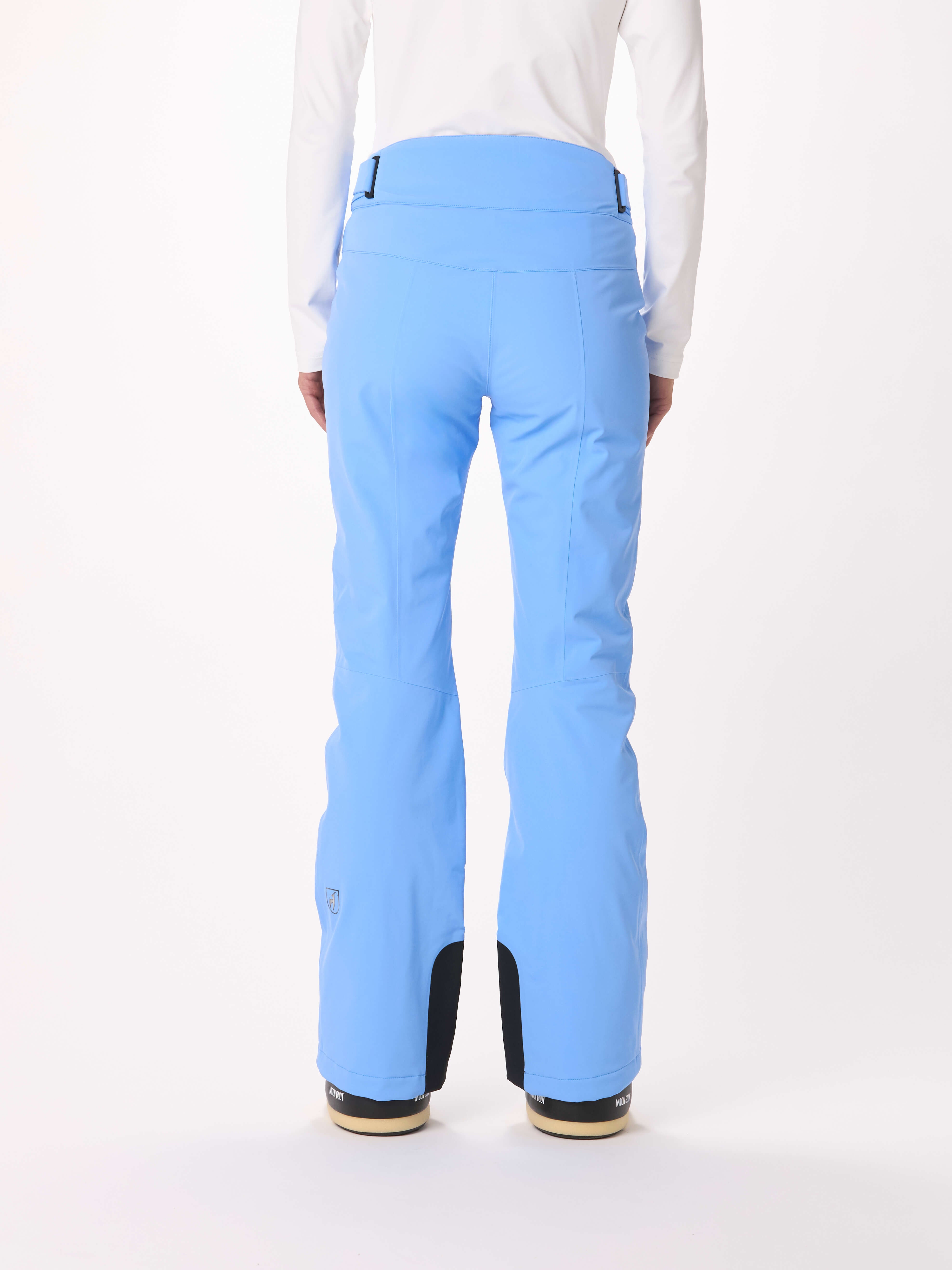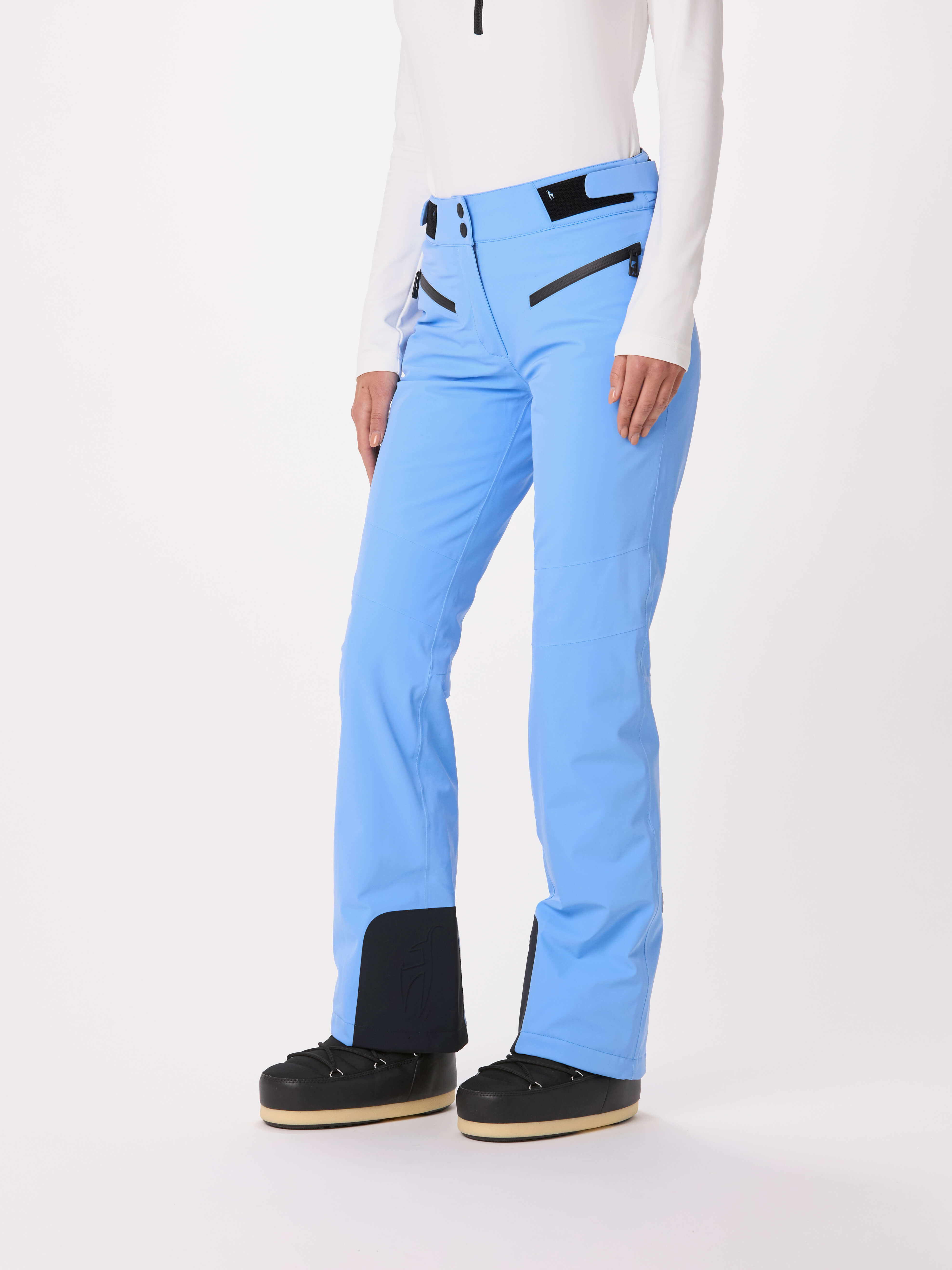 The technical and completely waterproof AMIS women’s ski pants impress with a perfect fit and maximum freedom of movement. The Japanese Premium 4-way Stretch stretches effortlessly in all directions, just like the PU membrane, which provides additional protection against moisture. The back waistband is cut higher to optimally warm the kidney area, while the YKK® AquaGuard® zippers reliably seal the two pockets against water. Fine details of the ski pants include the molded Toni Sailer logo on the edge protection.