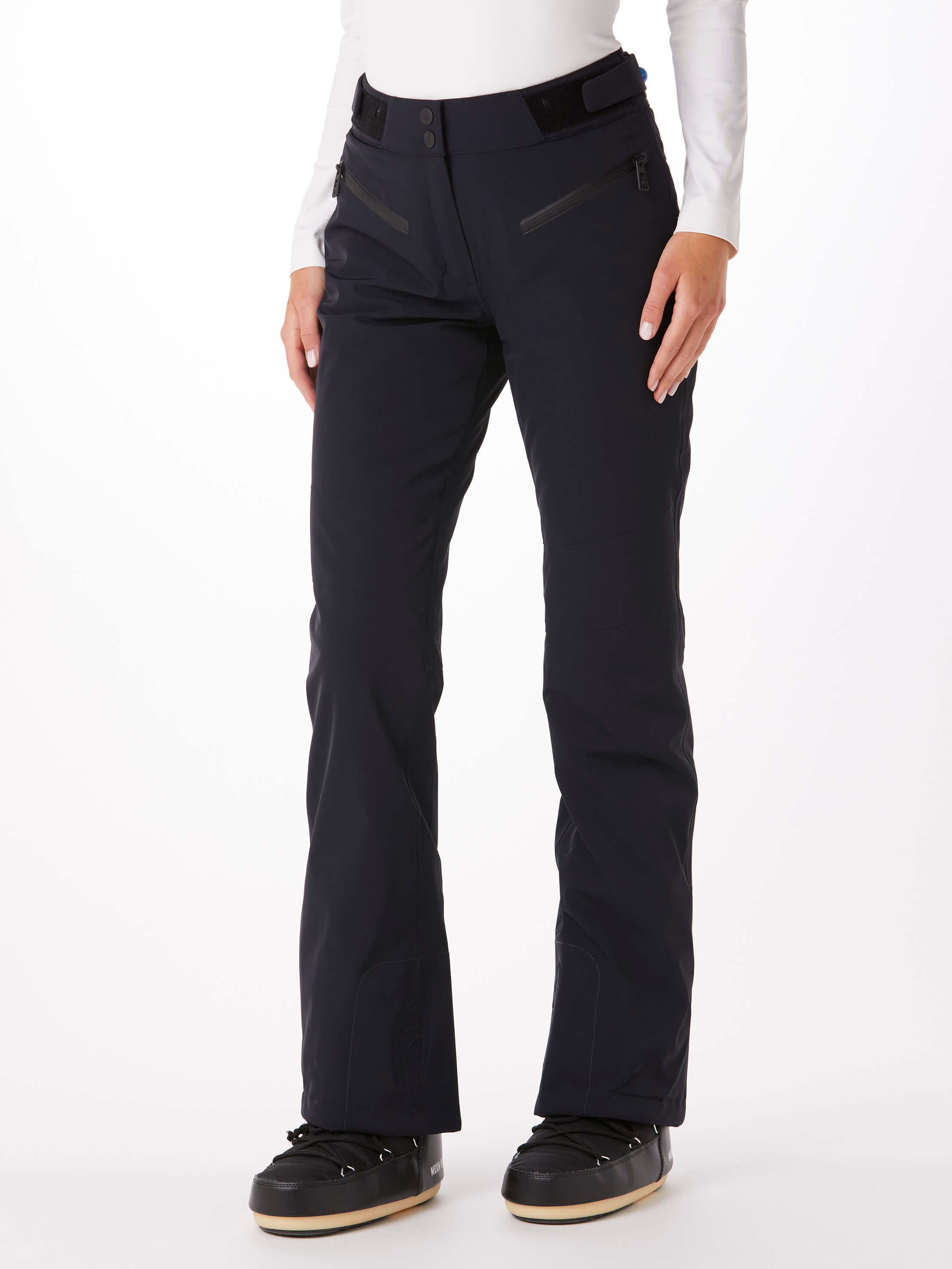 The PFAS-free, technical and completely waterproof AMIS women’s ski pants impress with a perfect fit and maximum freedom of movement. The Japanese Premium 4-way Stretch stretches effortlessly in all directions, just like the PU membrane, which provides additional protection against moisture. The back waistband is cut higher to optimally warm the kidney area, while the YKK AquaGuard® zippers reliably seal the two pockets against water. Fine details of the ski pants include the molded Toni Sailer logo on the edge protection.