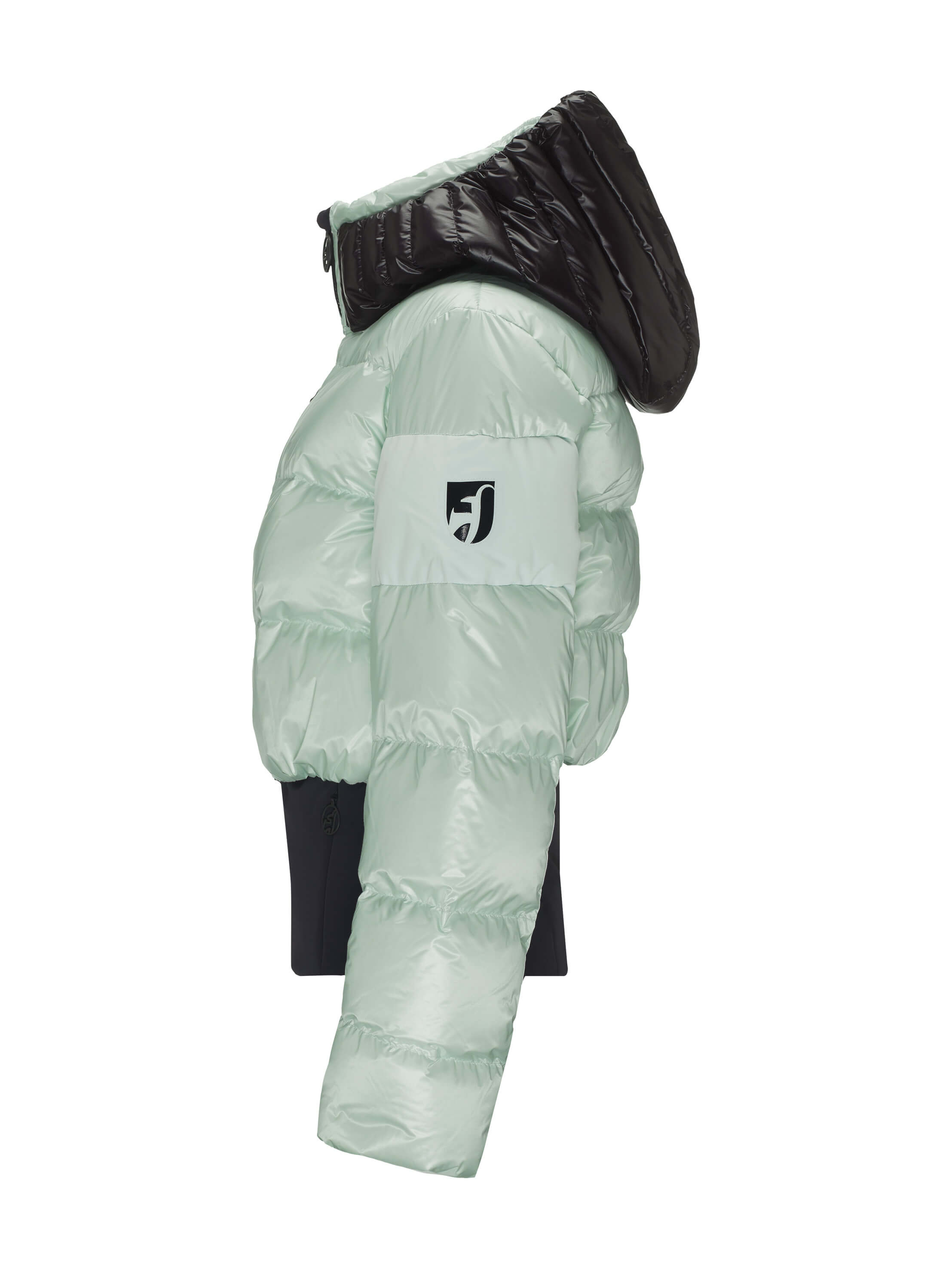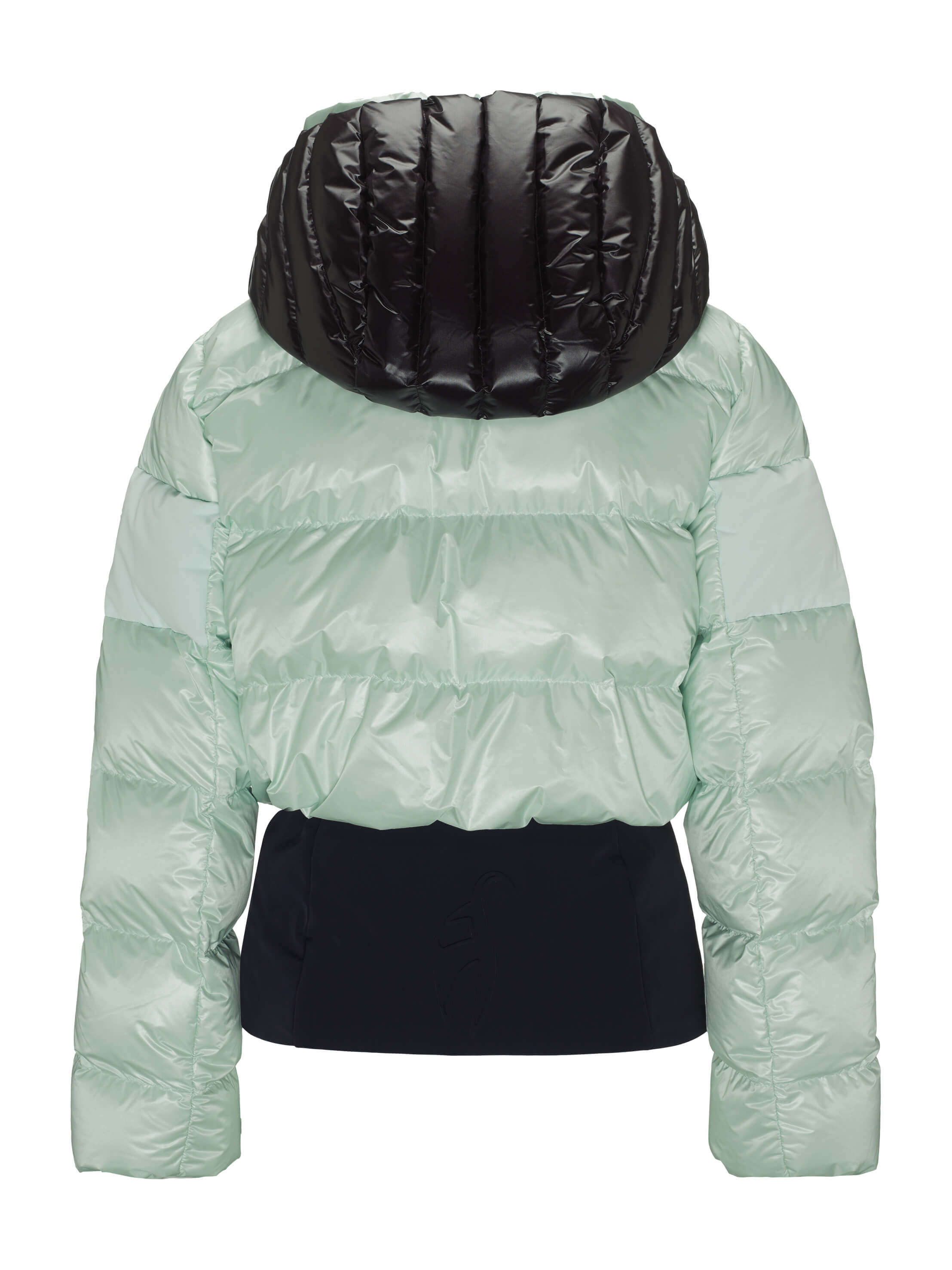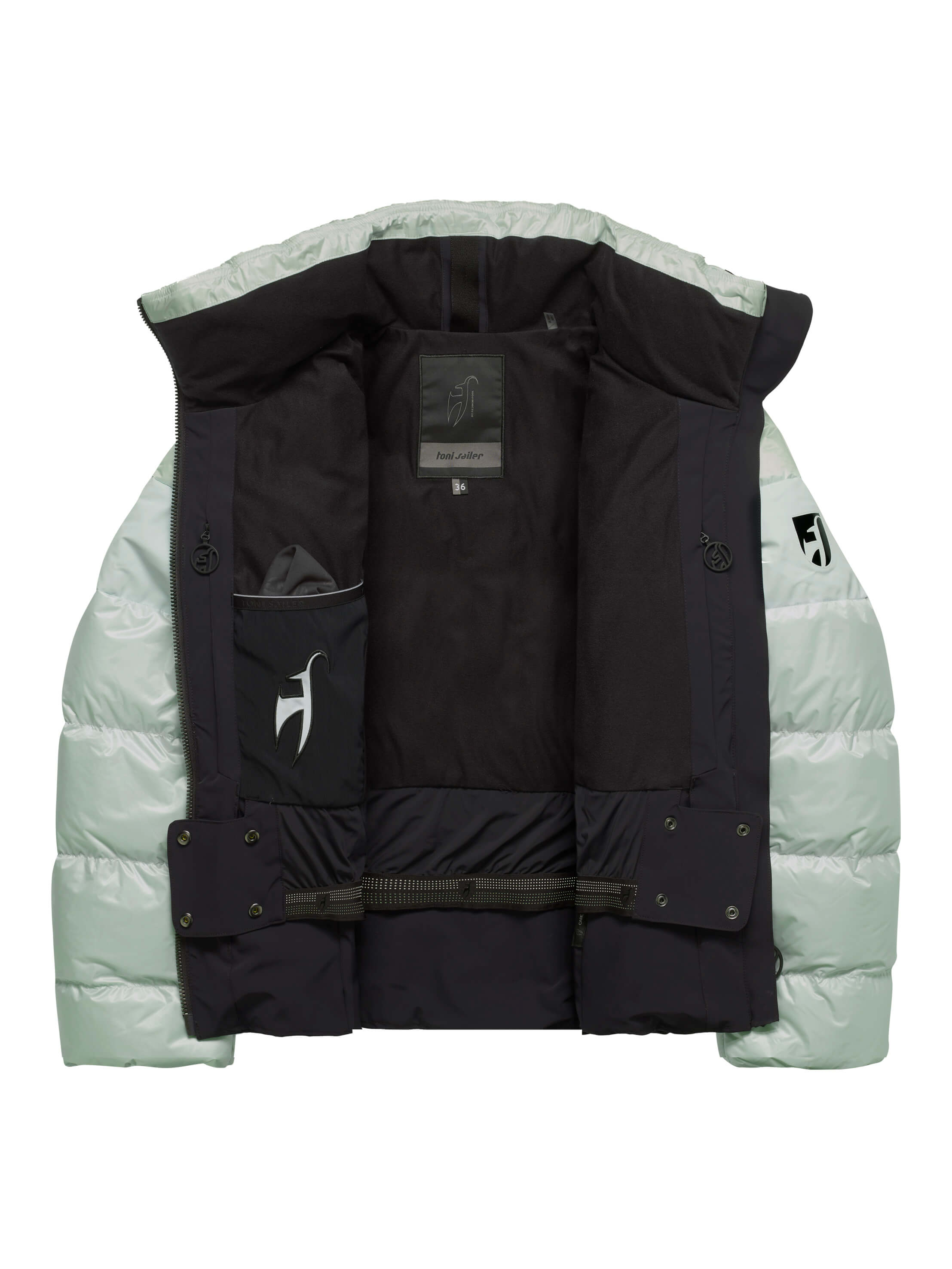 Light, warm and fashion. With 100% certified down insulation the BERNADETTE jacket creates a very fashy puffy look on the slopes and in the resorts. Loose fit optic meets slim fit! The YKK® 2-way METALUXE® front zipper, the glossy bonded logos and the special shiny chamber look fabric for the hood make the BERNADETTE so progressive.