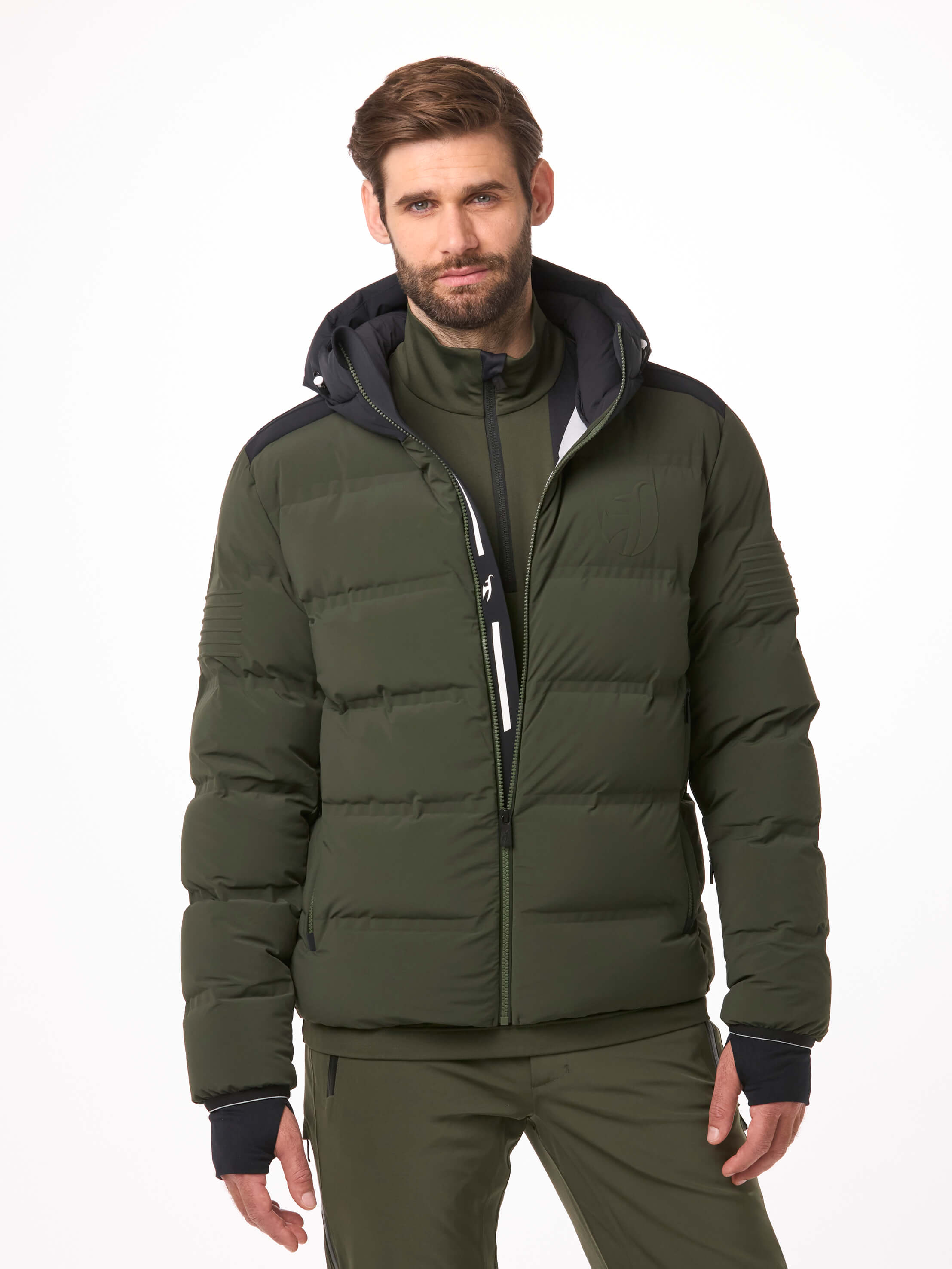 The FINN men’s ski jacket creates a new urban puffy look with PrimaLoft® Down Blend! This makes you feel so cozy during the cold winter days on the slopes or in the city! This comfort fit jacket highlights the legendary Toni Sailer in the year of our 20th anniversary inside. Even it's a luxury puffy look, the FINN is one of our lightest jackets in the range AW25/26.