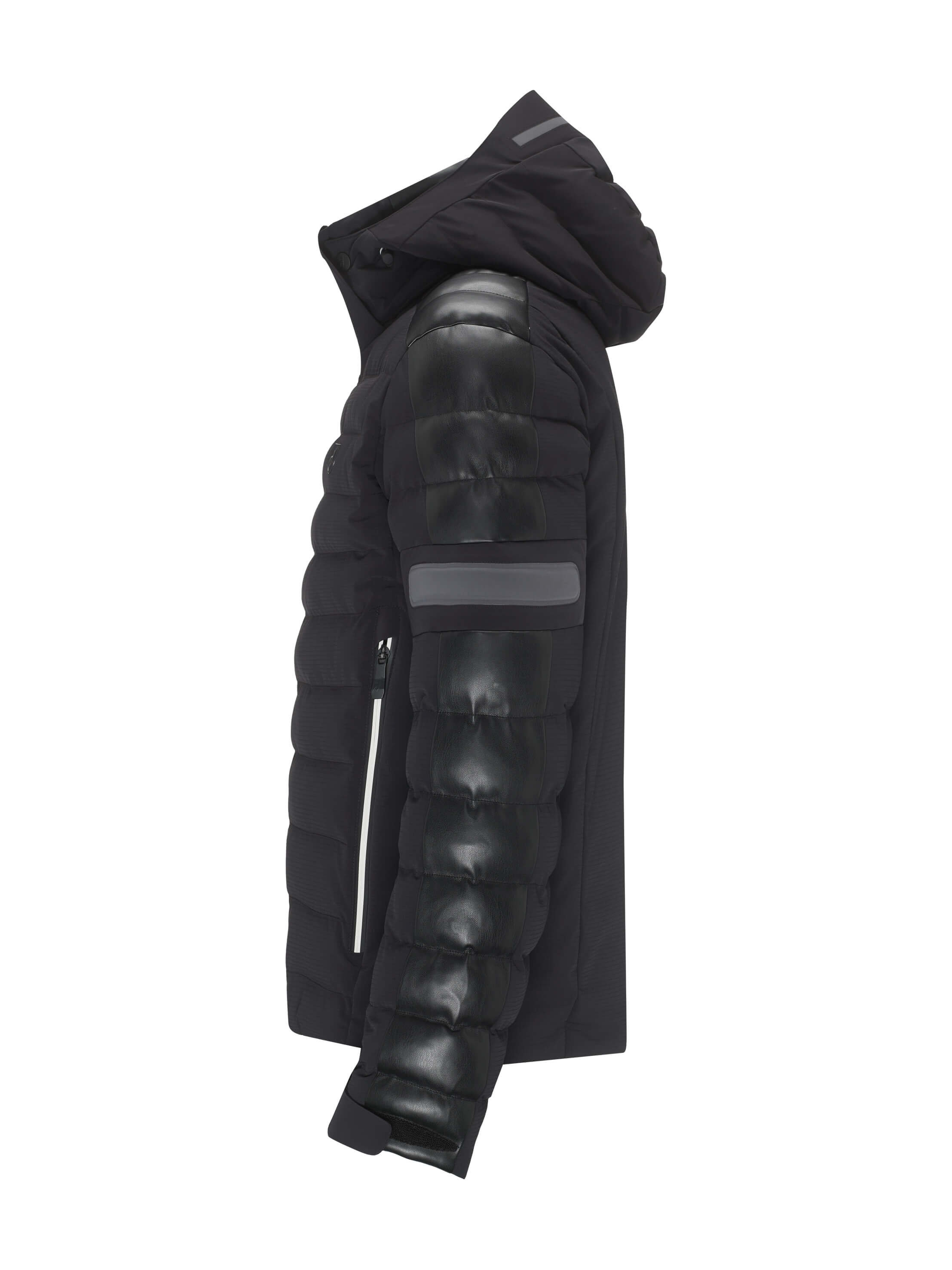 The mix between our Premium 4-way Stretch Ripstop fabric and a sporty Faux Leather creates the unique look of the GIDEON FAUX LEATHER men’s ski jacket. Without losing any technical feature, this Toni Sailer jacket will be the most sophisticated one on the slopes and in the city.