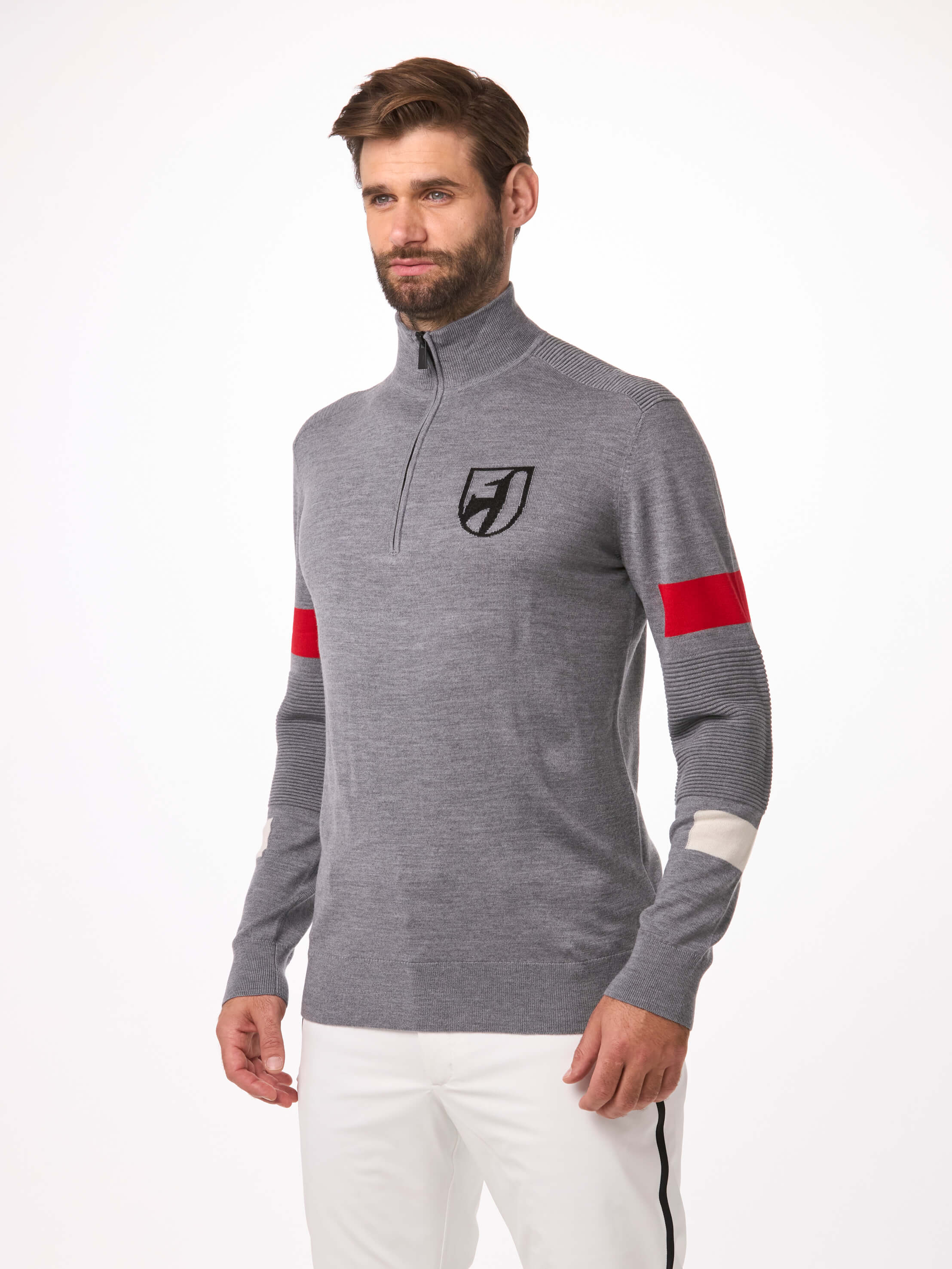 The HUBERT men’s merino sweater is perfect for both skiing and leisure. The extra fine merino wool is breathable, moisture-wicking, and temperature-regulating. The stand-up collar protects the neck from wind, while the YKK® zipper allows for individual ventilation. Various color-contrasted details give the knit sweater a sporty character. The smocked sections on the shoulders and upper arms complement the Toni Sailer style.