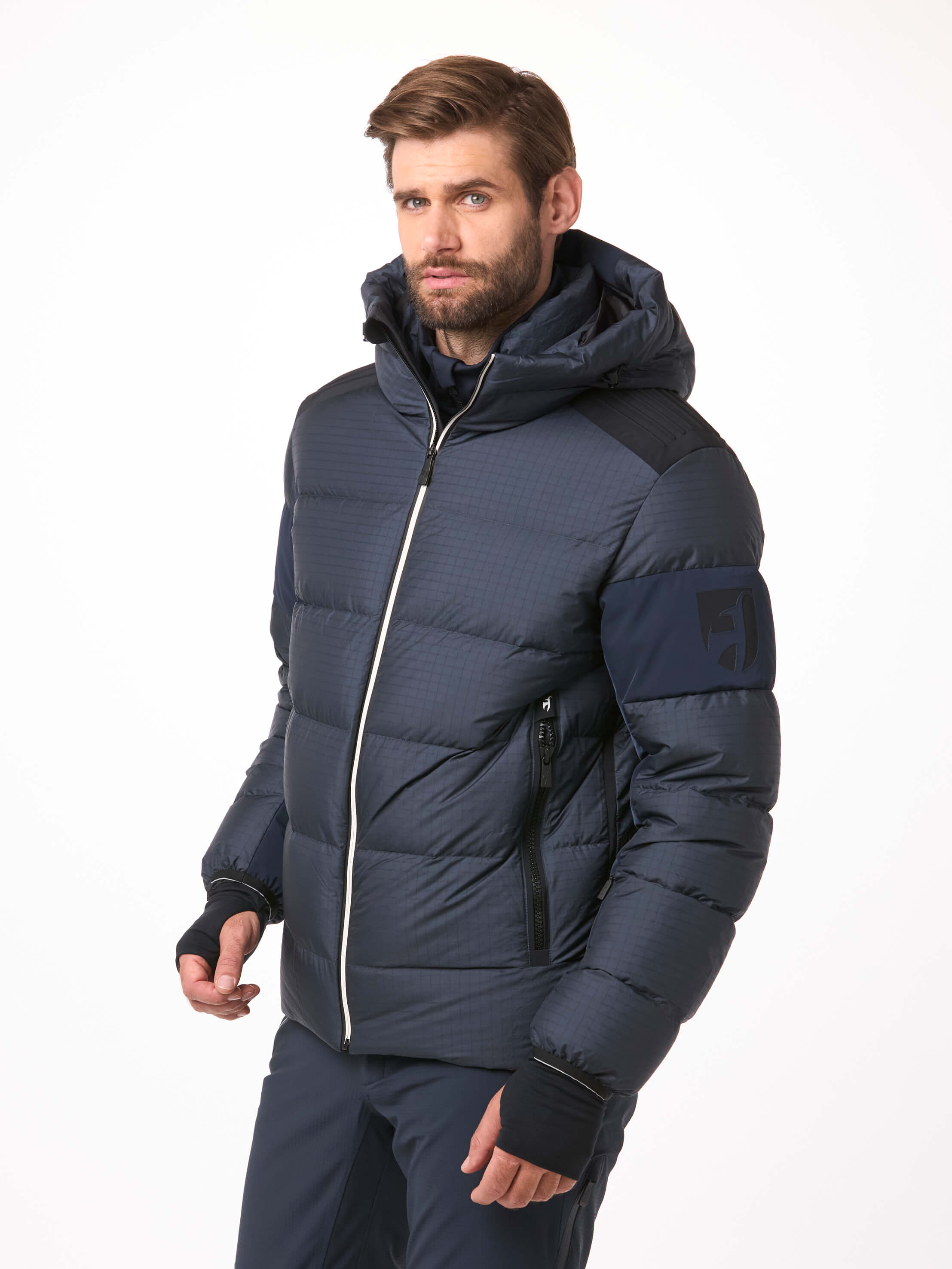 Light and warm! With luxury and certified pure down, the LENNY jacket creates a very fashy puffy look on the slopes and in the streets. 3D tech elements on the shoulder parts and a laser bonded Toni Sailer Gams logo combine fashion x function!