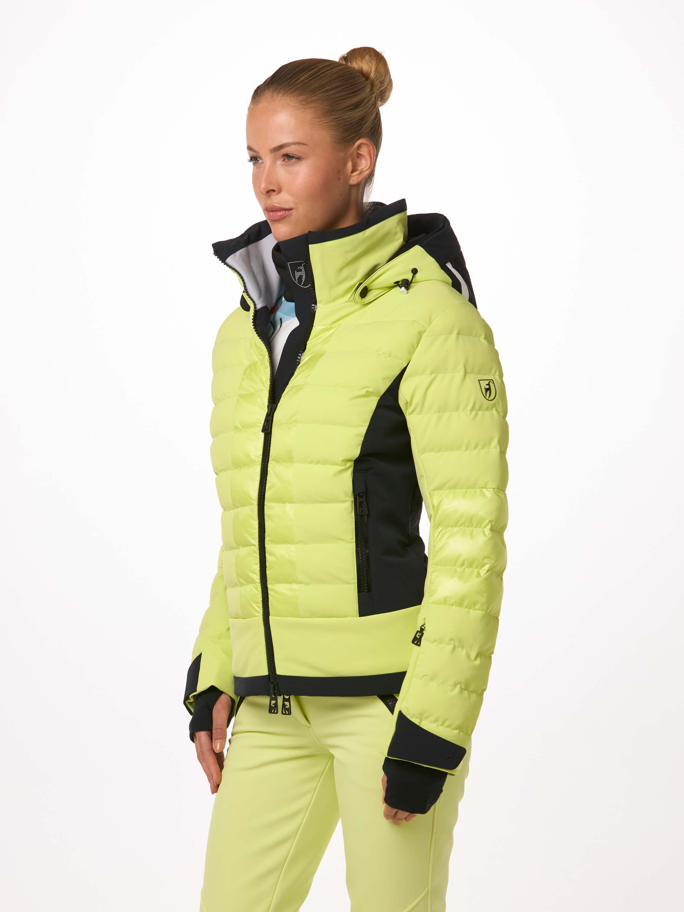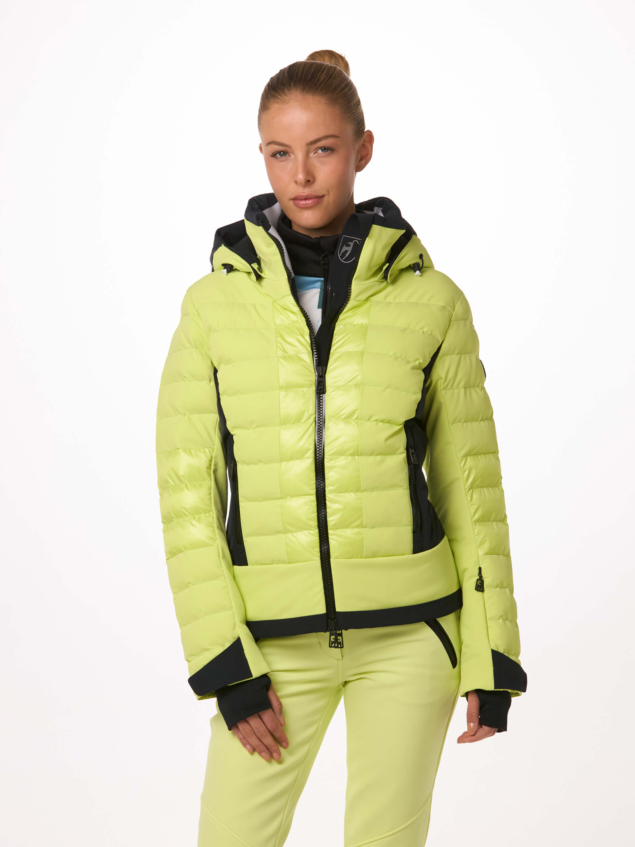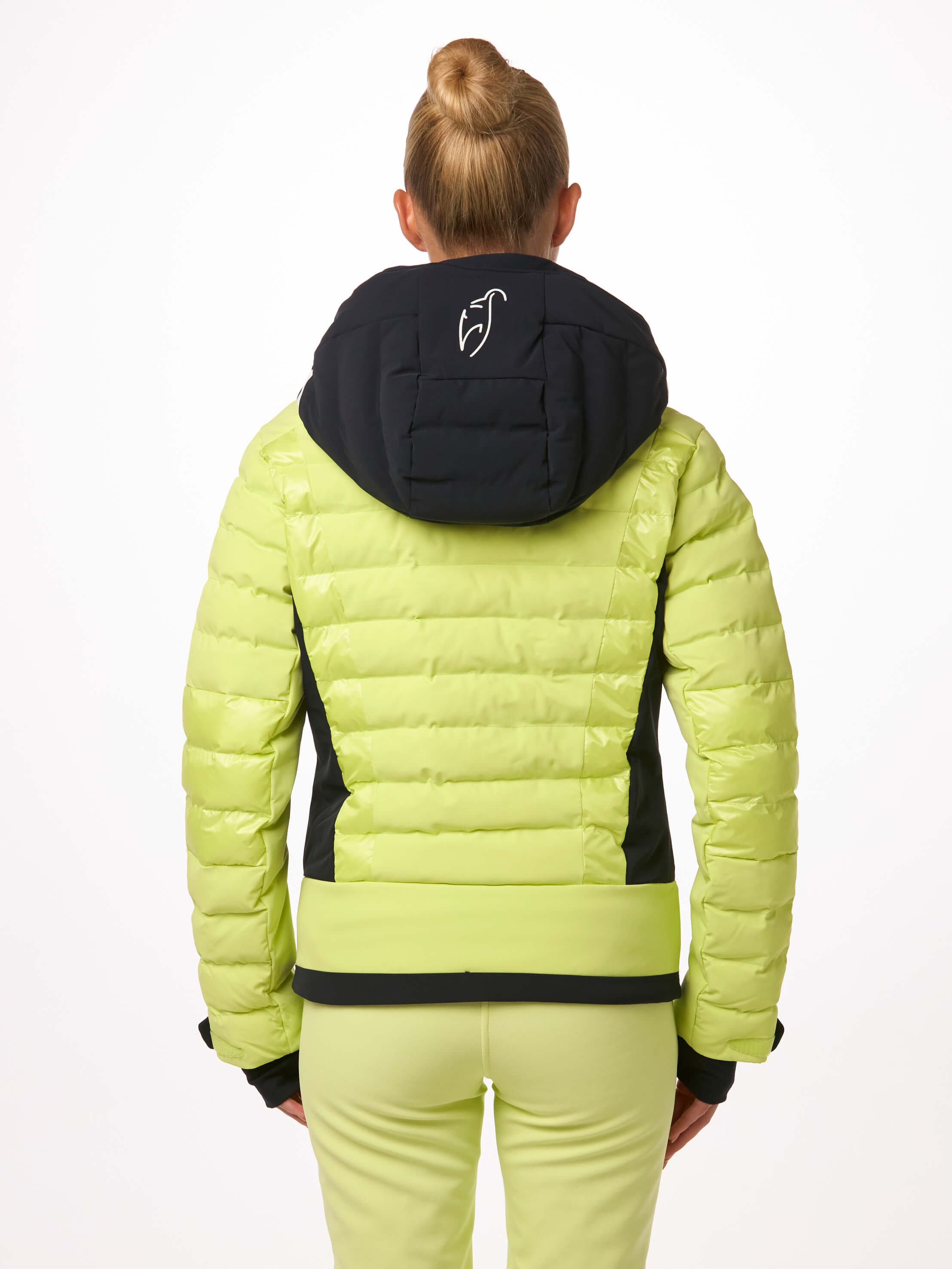 The perfect mix between Premium 4-way Stretch and our Nylon Shiny Ripstop, between tonal and shiny fabric details, between fibre filled chambers and plain details. The LISBETH jacket or how we say it – fashion meets function! With its SORONA® fiberballs insulation, this jacket is made for long days in the mountains. Premium stretch supports each of your turns in deep powder or on the slopes.