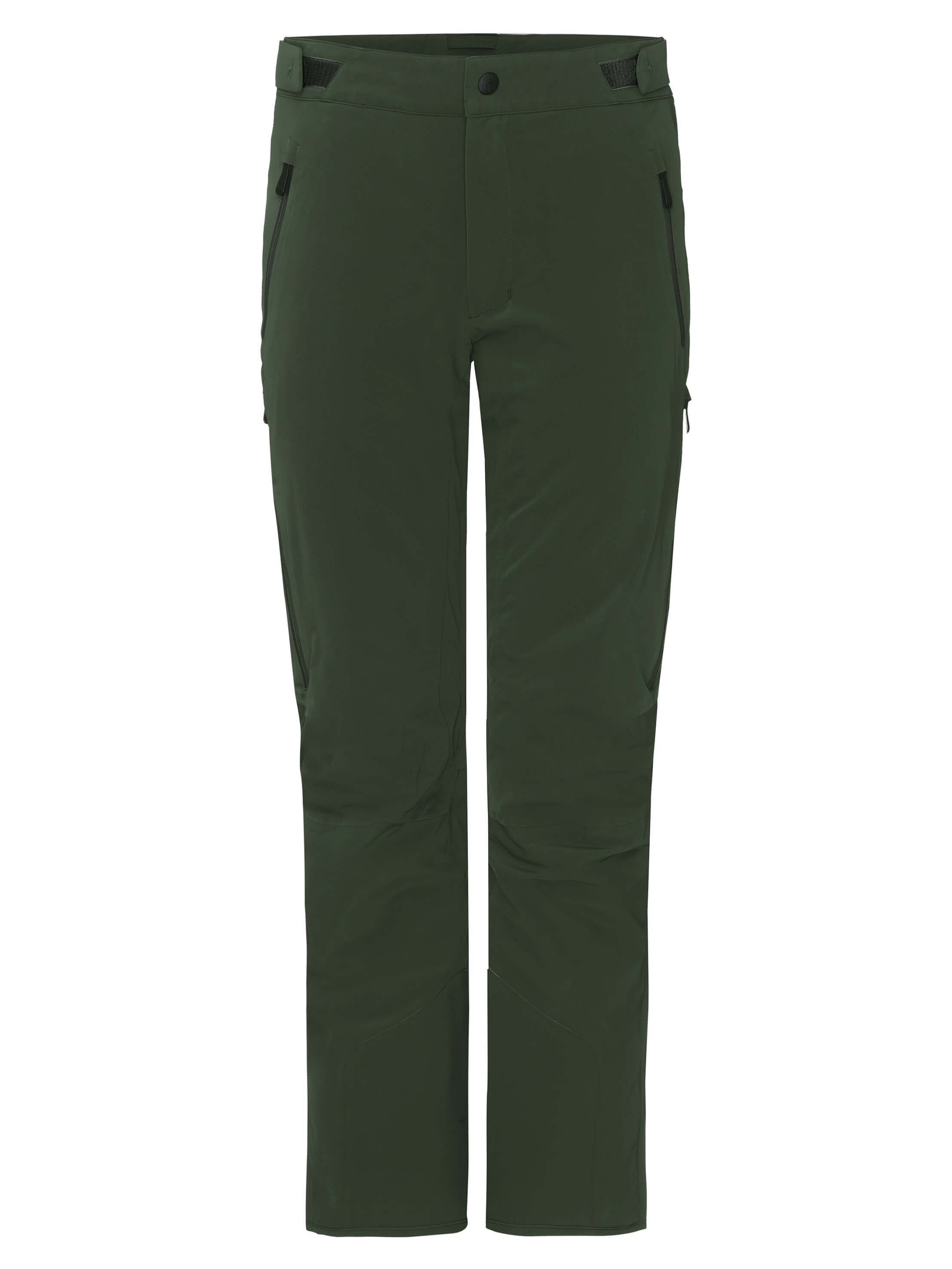 The PFAS-free NICKY men’s ski pants, made from Japanese Premium 4-way Stretch, prove to be extremely reliable both on the slopes and in off-piste terrain. The pants offer a perfect fit with maximum freedom of movement and high protection against cold, wind, and moisture, coming with fully taped seams. For optimal body climate, the pants feature ventilation zippers on the outer legs as well as easy entry zippers, making it easier to put on with ski boots. With edge protection in the corresponding ski pants colour. The NICKY ski pants also come with suspenders from the collection.